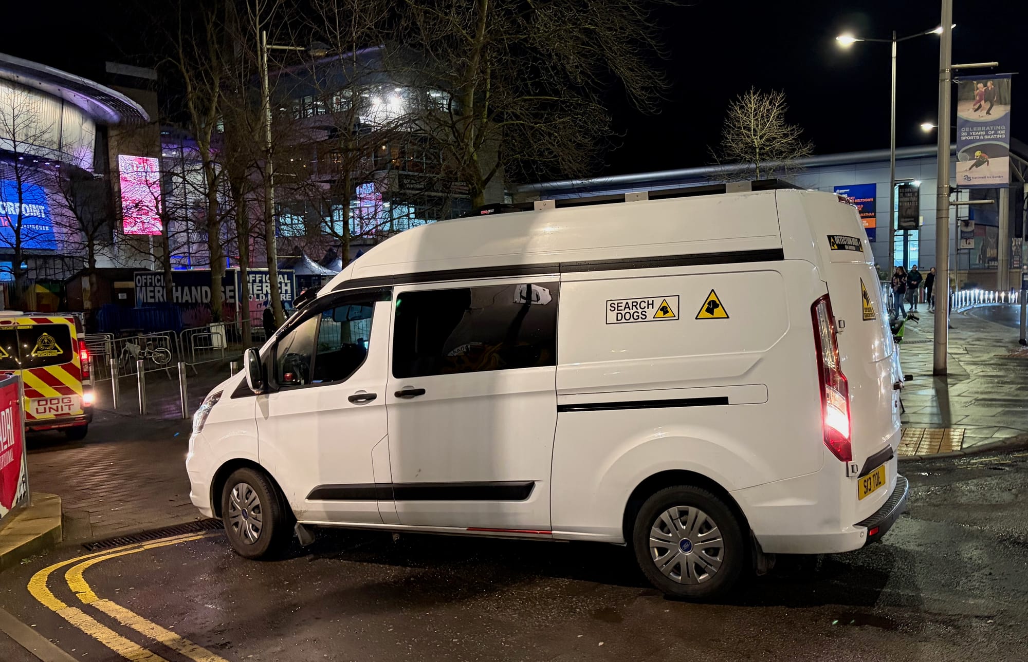 "There are lots of Forest fans here tonight, and a lot of Leeds fans too," a Motorpoint security guard told the Morning Briefing. "There's a concern about football rivalry." When asked if there had been any incidents where the police were required, he said they were just a preventative measure so far.